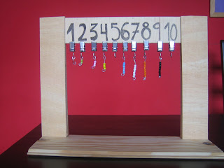 Lo pegamos en la base de madera, dibujamos los números y ponermos las pinzas o ganchos o lo que queramos para colgar las perlas: